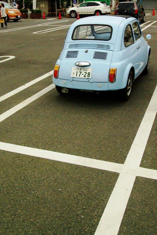 イタリアのあの頃の国民車(日本ではパプリカ800、スバル360、マツダ360、親父が乗っていた浜松のメーカーの360、鈴木か?、と同時代か)が600CCがさすが、だった。(CCはちょっと、あやしい)フランスの国民車、シトロエンと並び称されて(先進国の国民車として)紹介されていた。すでに頭の中に、車のイメージが沸き起こっていた少年には、絶賛するより、違うんだよな、と、わら半紙にスケッチを書いていた。ちゃかりと ファイアットの回転性、エンジンの噴きあがり、シトロエンの奇妙なクッション、シートの形状などのいいとこどりはしっかり取り入れ、前には4っ目にするなどあそんでいたものだ。後に4っ目がでてきた時には、びっくりしたもんだ。スカイラインかな、セドッリクかな、横と縦できたが、これは私が描いたように横が勝ち。あたりまえ、 メーカーというのは対抗手段で無理なな事もあえてする、と言う例。昔から・・・ね。